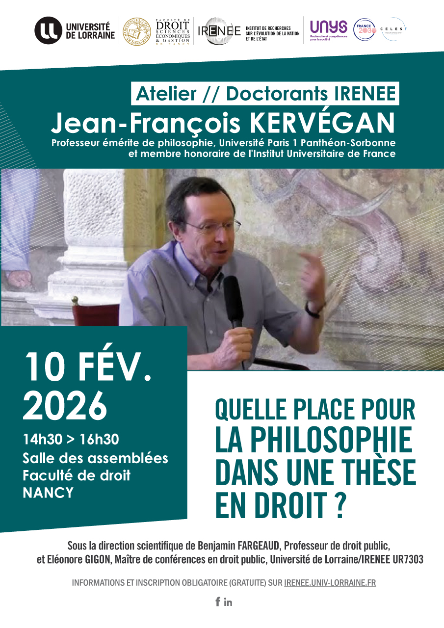 Avec Jean-François KERVÉGAN, Professeur émérite de philosophie, Université Paris 1 Panthéon-Sorbonne et membre honoraire de l'Institut Universitaire de France.