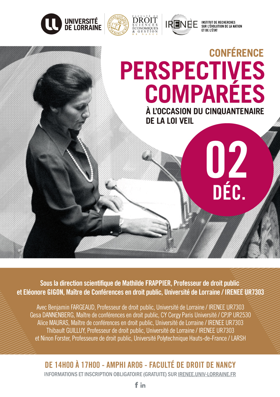 Résumé : Cette année marque les 50 ans de la loi du 17 janvier 1975 relative à l'interruption volontaire de grossesse en France. Plutôt que de s’arrêter exclusivement sur l’expérience française, qui a déjà donné lieu à plusieurs manifestations et publications au cours de cette année, l’objectif est de prendre le prétexte de cet anniversaire pour évoquer l’encadrement juridique de l’avortement dans une perspective comparée. En mettant en avant les expériences d’autres États (États-Unis, Allemagne ou Amérique latine) et en discutant l’apport que pourraient avoir certaines organisations internationales (Conseil de l’Europe, Union européenne) en la matière, nous espérons interroger l’impact du contexte historico-culturel ainsi que l’effectivité de cet encadrement juridique y compris en France. La conférence prendra la forme de deux tables rondes structurées respectivement autour de deux questions : d’abord, la construction de l’encadrement juridique de l’avortement, et ensuite, les controverses autour du droit à l’avortement.