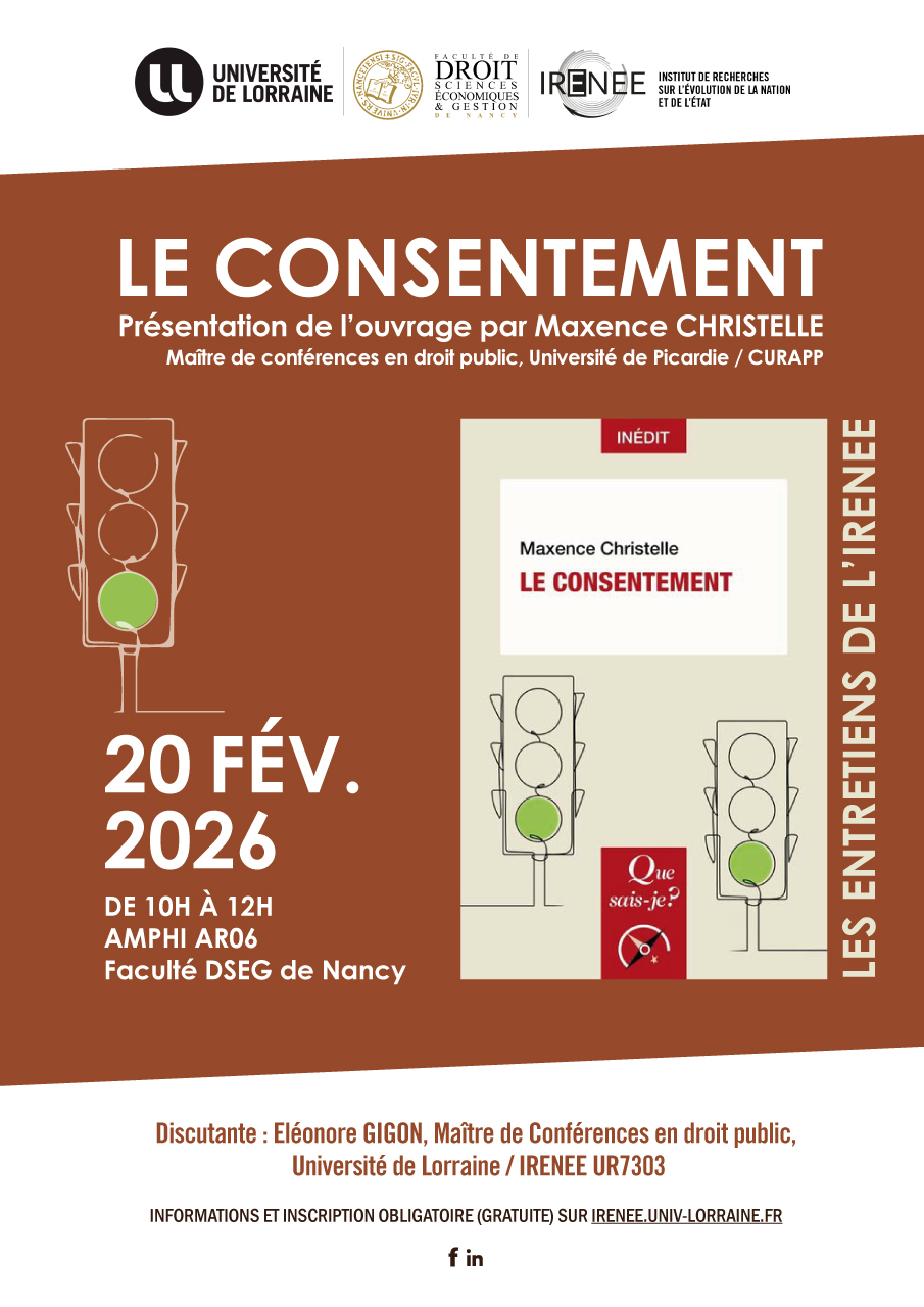 Présentation de l'ouvrage par Maxence CHRISTELLE, Maître de conférences en droit public, Université de Picardie / CURAPP, suivie d'une discussion avec Eléonore GIGON, Maître de Conférences en droit public, Université de Lorraine / IRENEE UR7303.