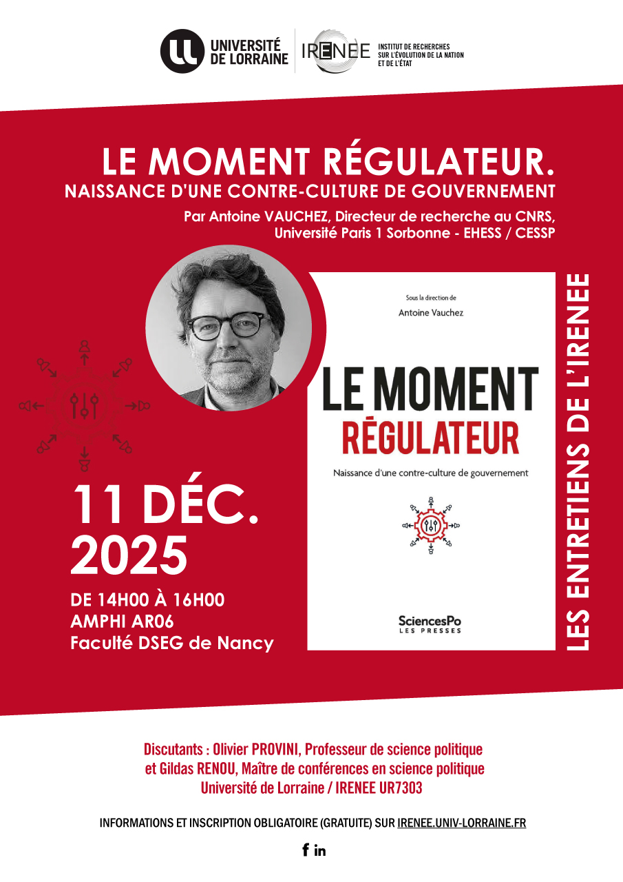 Présentation de l'ouvrage par Antoine VAUCHEZ, Directeur de recherche au CNRS, Université Paris 1 Sorbonne - EHESS / CESSP. Discutants : Olivier PROVINI, Professeur de science politique et Gildas RENOU, Maître de conférences en science politique, Université de Lorraine / IRENEE UR7303.
