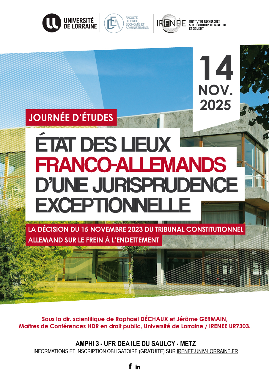 Sous la direction scientifique de Raphaël DÉCHAUX et Jérôme GERMAIN, Maîtres de Conférences HDR en droit public, Université de Lorraine / IRENEE UR7303.