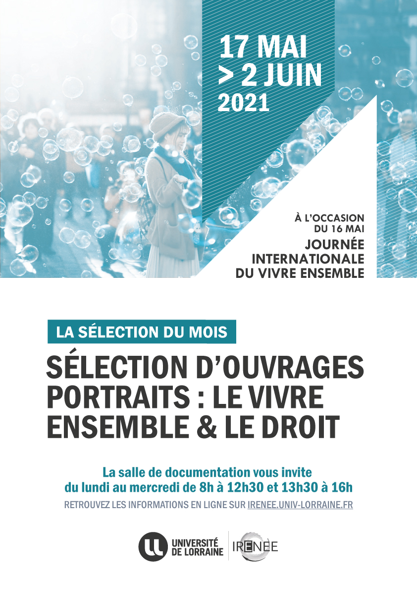 Ce mois-ci, à l'occasion de la journée internationale du vivre ensemble, le 16 mai, l’IRENEE met à l'honneur l'ouvrage collectif coordonné par nos chercheurs : > Le vivre ensemble saisi par le droit, sous la dir. de C. BOURIAU, A. MOINE et M. ROTA