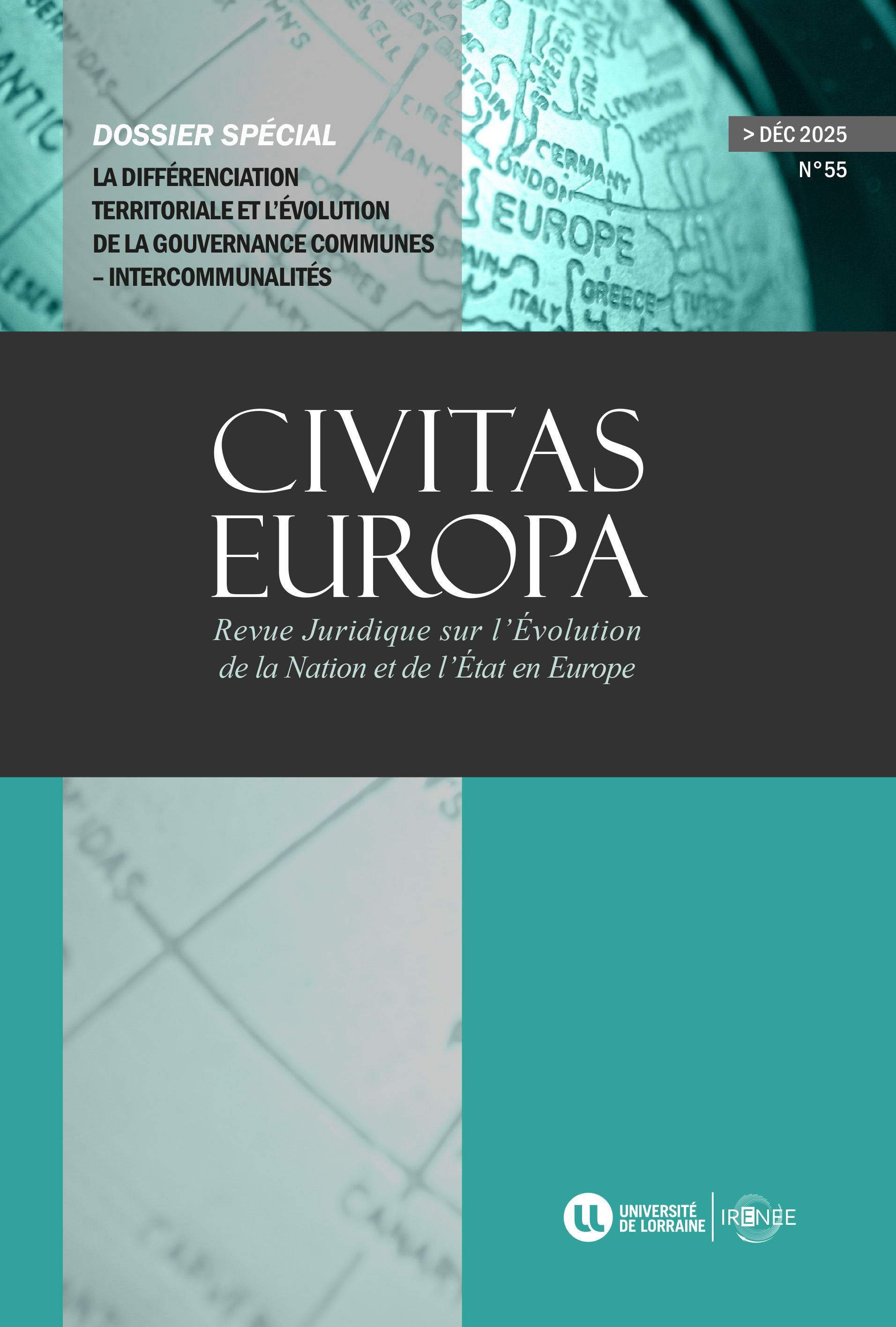 Les communications présentées dans le dossier constituent les actes du colloque qui s’est tenu les 3 et 4 avril 2025 à la Faculté de droit de Metz, sous la direction des Professeurs Pierre Tifine et Nadine Dantonel-Cor. Le colloque sur la différenciation territoriale et l’évolution de la gouvernance communes – intercommunalités a eu pour objectif de réfléchir sur le renforcement de l’équilibre institutionnel dans le bloc communal et sur la nouvelle répartition des politiques publiques locales au sein du couple communes-intercommunalité.